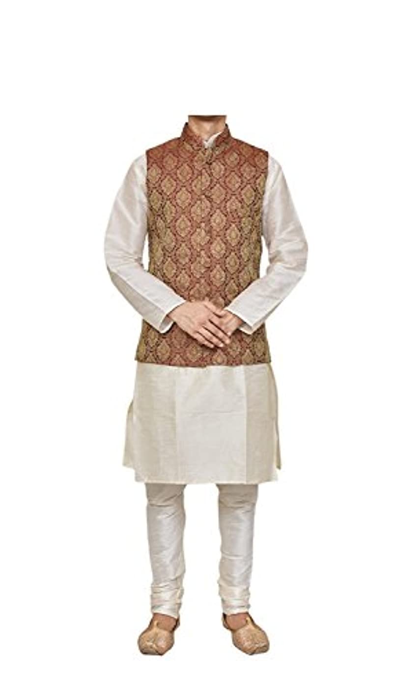 Modern Garments Mens Cream Kurta Pyjama with Ethnic Nehru jacket Set